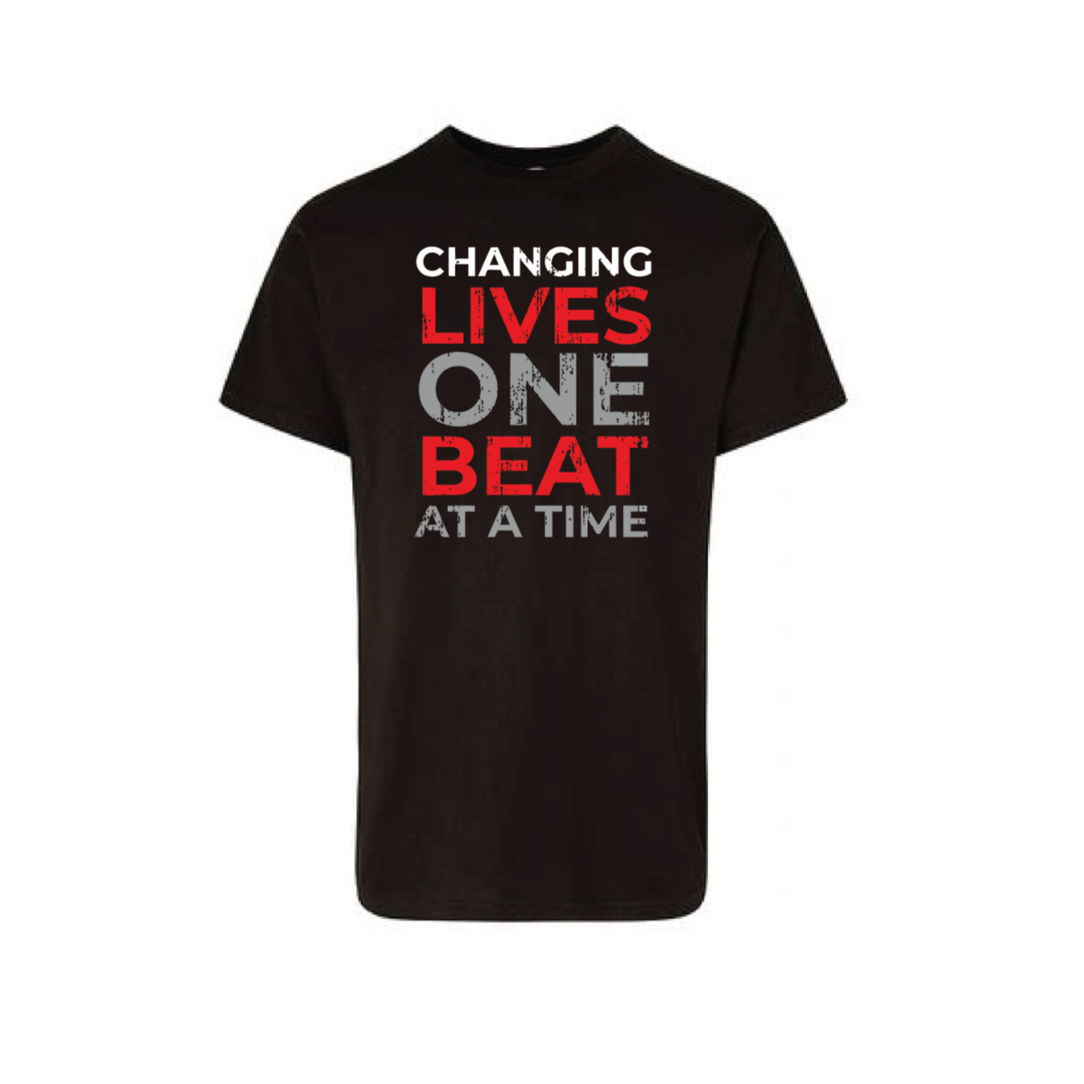 Rock your rhythm with this bold black tee featuring the inspiring message "Changing Lives One Beat At A Time." Perfect...