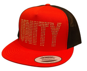 Rock a bold statement with this red flatbill cap featuring sleek black mesh paneling and eye-catching Unity Bling detailing. The...